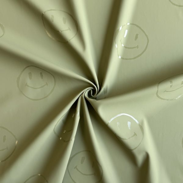 Látka na pršiplášť Happy faces army green | Domov > Exteriérové látky |