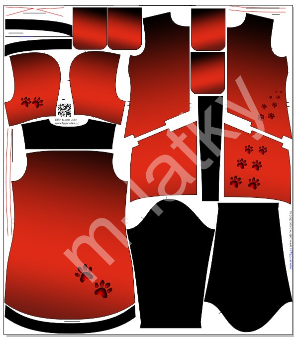 OB F - Panel se střihem dámská bunda Julie -tlapky - červené...