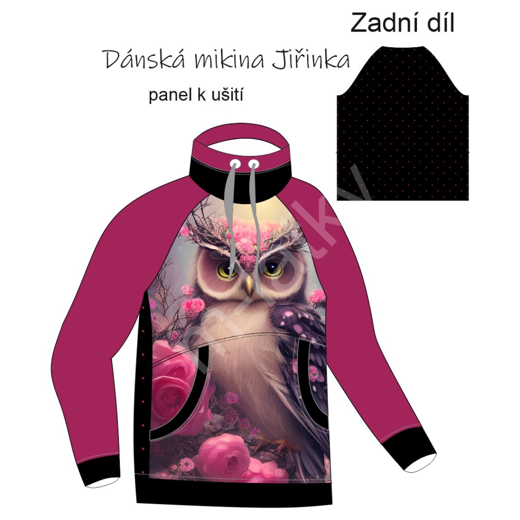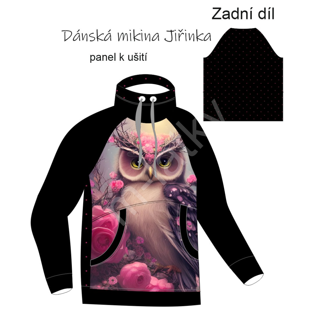 OB F - Panel - dámská mikina Jiřinka - sova Teplákovina s p...