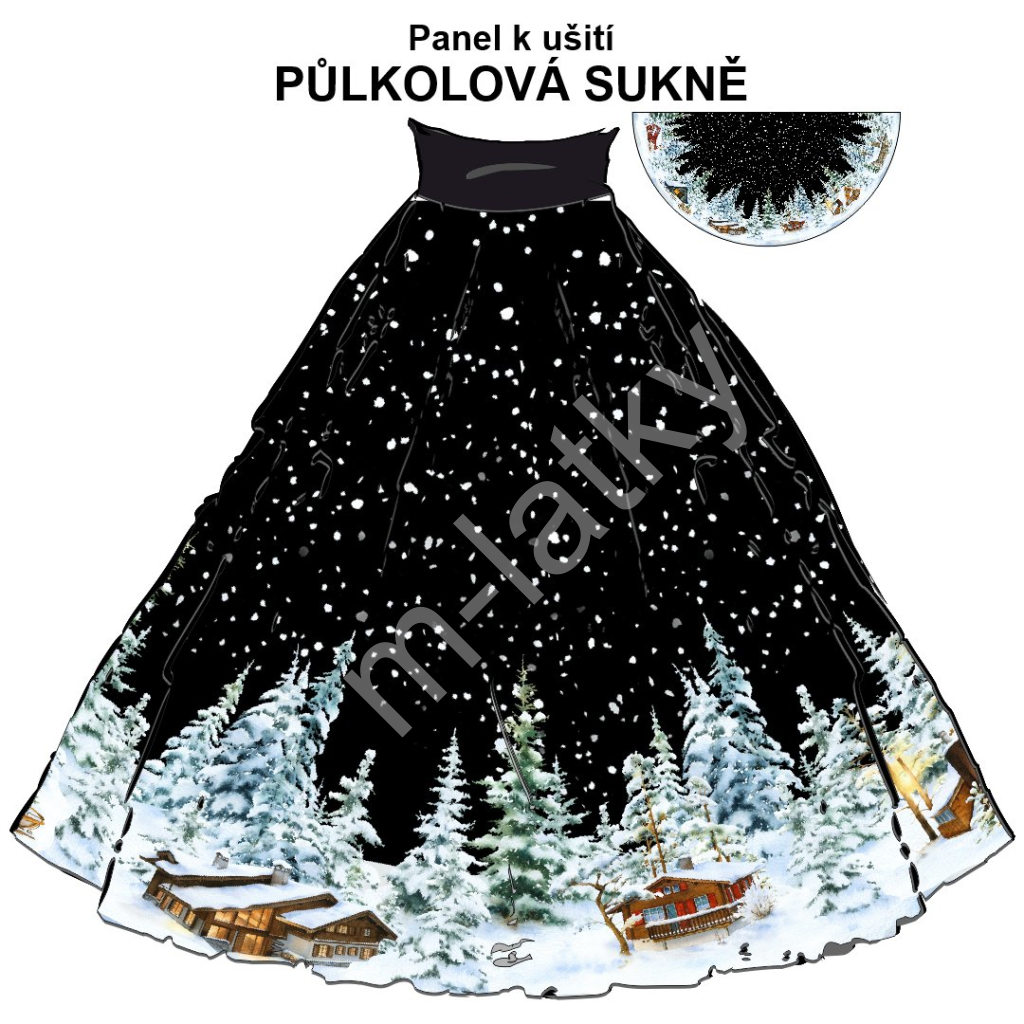 OB Půlkolová sukně zimní domečky Silky 100 cm - náš tisk na ...