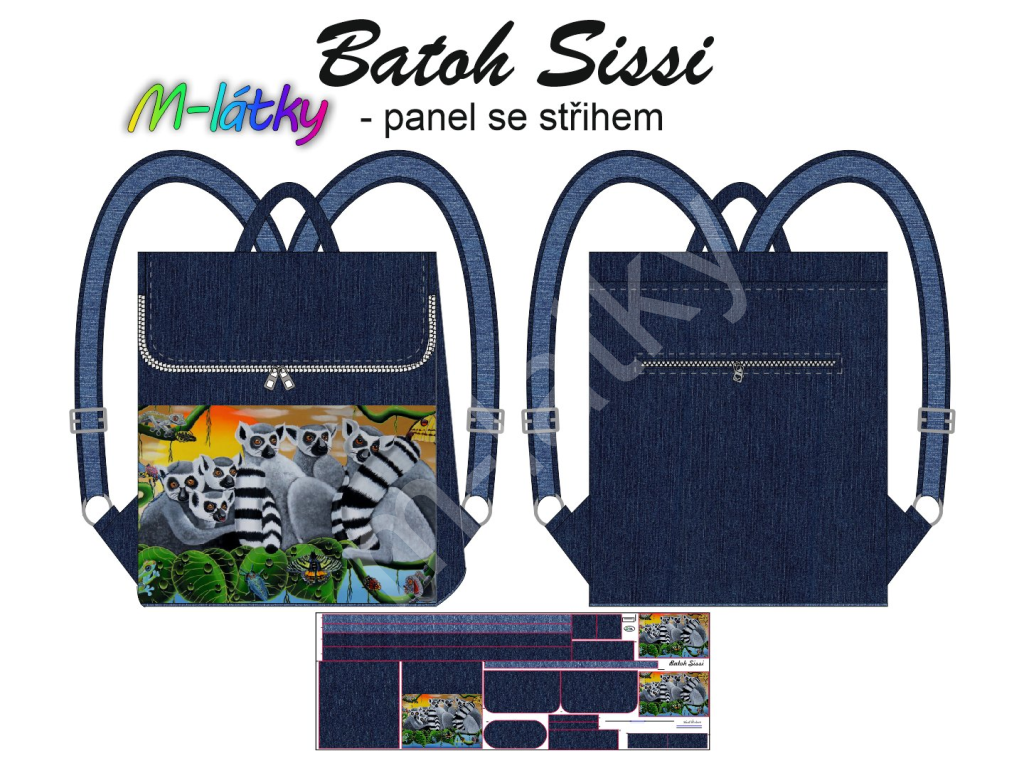 OB TL - Panel se střihem - Překlápěcí batoh Sissi - Lemuři ...