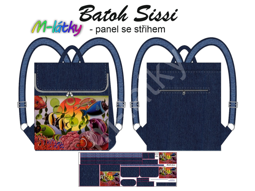 OB TL - Panel se střihem - Překlápěcí batoh Sissi - Ryby -...
