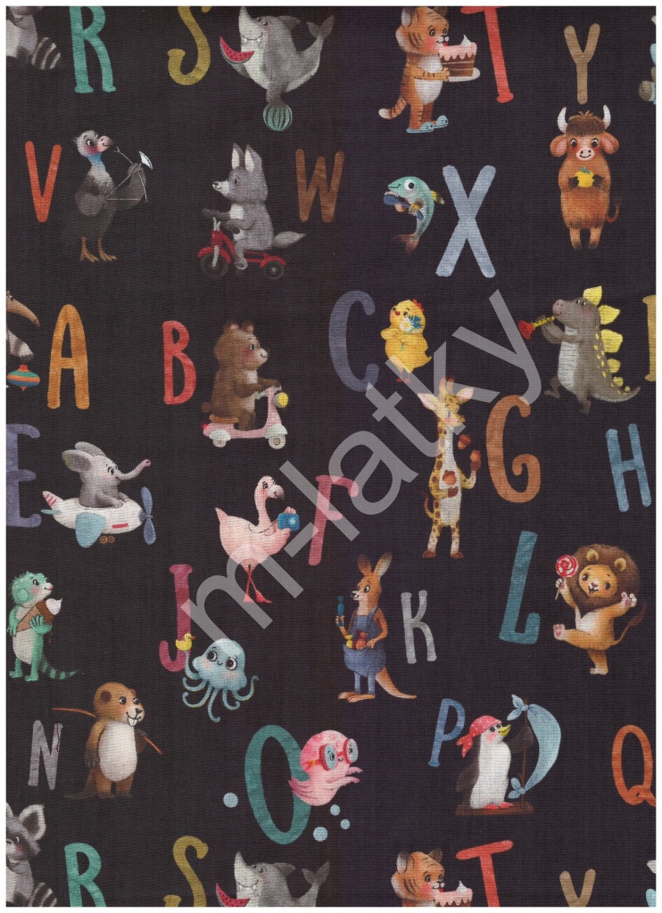 PA Bavlněný popelín - abeceda se zvířátky 100% bavlna | Metráž skladem |