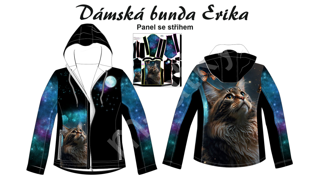 OB K - Panel k ušití - dámská bunda Erika - kočka Sotshell z...
