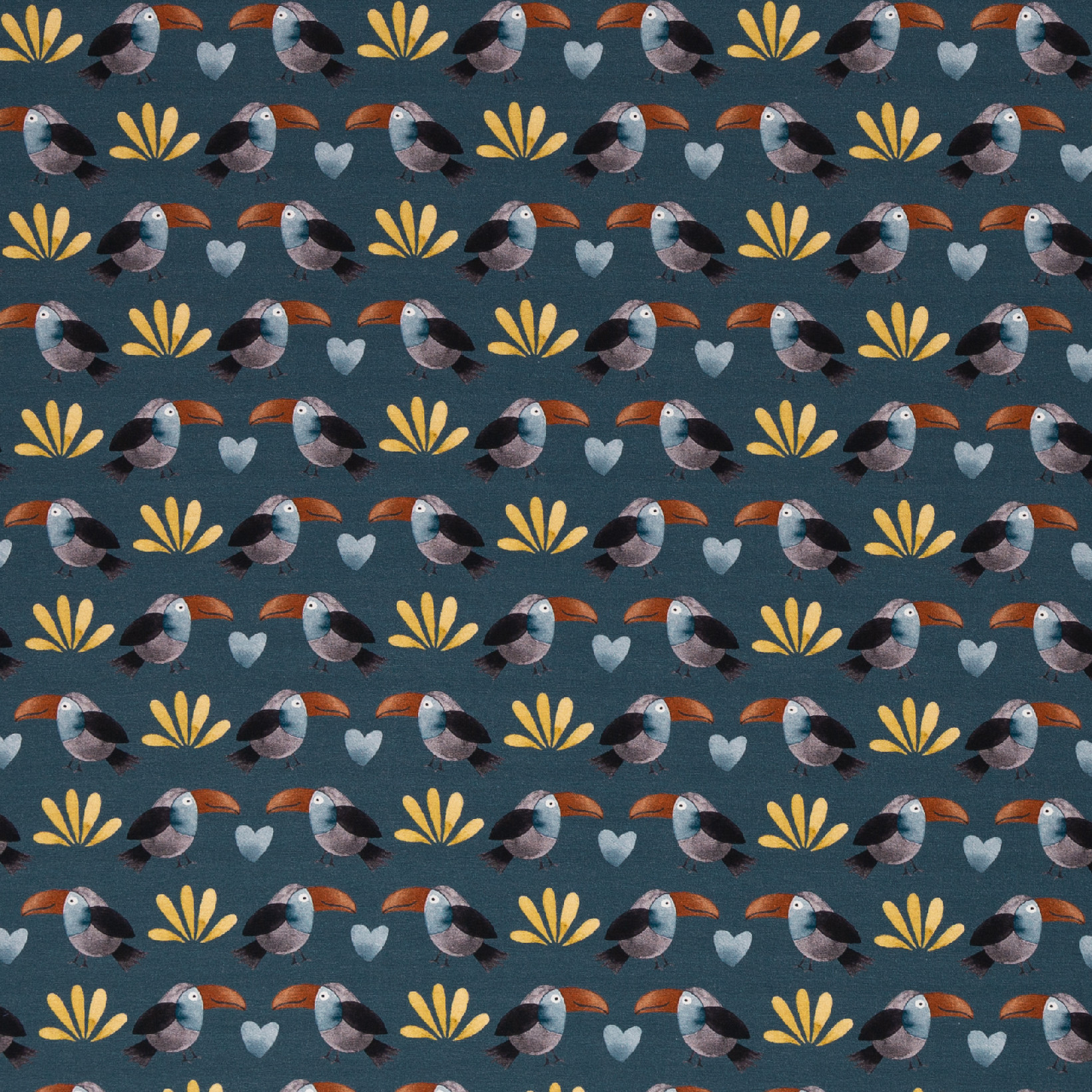 Úplet – ptáčci a srdíčka petrolejová | LÁTKY | ÚPLETY | Bavlněné úplety se... |