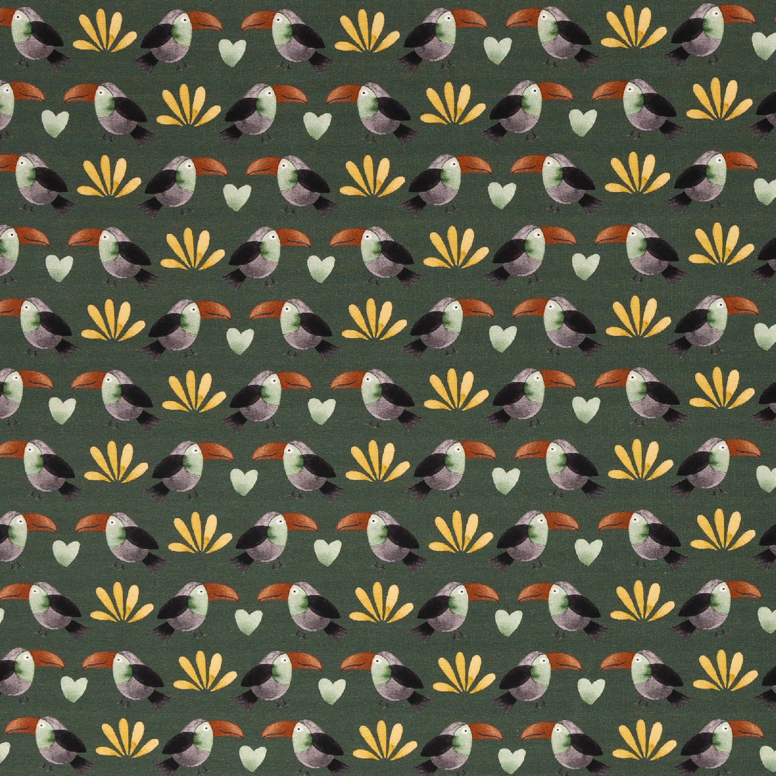 Úplet – ptáčci a srdíčka khaki | LÁTKY | ÚPLETY | Bavlněné úplety se... |