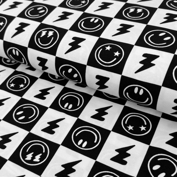 Úplet Happy faces black digital print | Domov > Úplet > Dizajnový úplet |