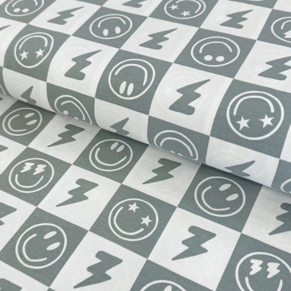 Úplet Happy faces sage digital print | Domov > Úplet > Dizajnový úplet |