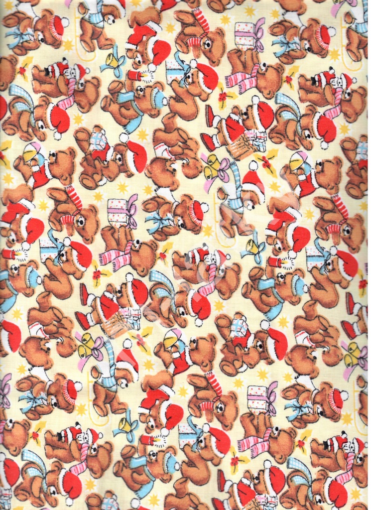 BL Plátno - vánoční medvídek na smetanové - vánoční látka 10...