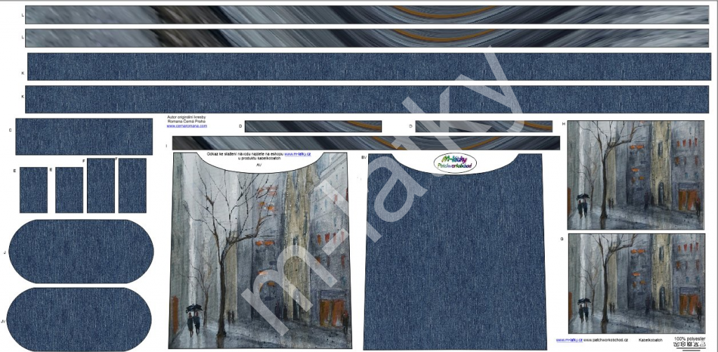 OB C - Panel k ušití - Kabelkobatoh Nancy 121 - déšť - origi...
