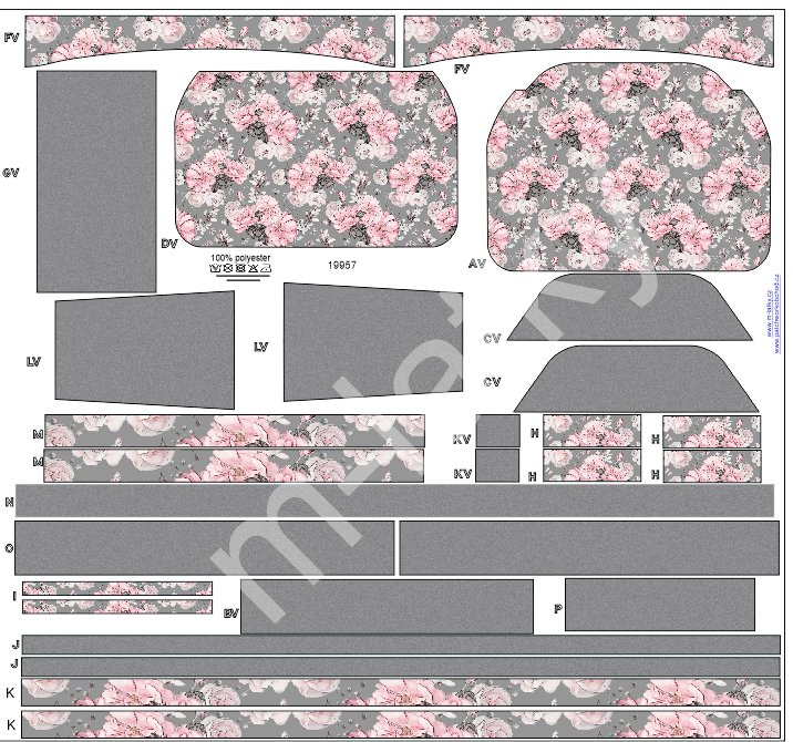 OB C - Panel k ušití - Překlápěcí/rolovací batoh - 3 - květy...