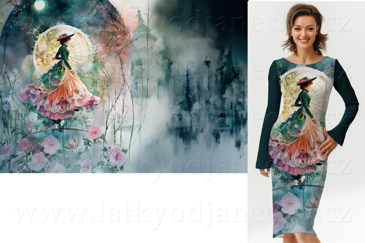 Viskozový úplet TOP 230g * PANEL 120cm * Dáma v zelené | ZLEVNĚNO > VÝPRODEJ > Panely > Celo... |