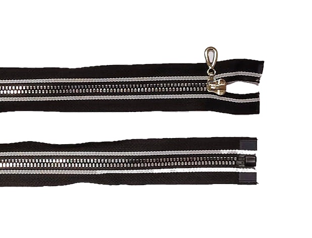 ČERNÁ S REFLEXNÍM PRUHEM * Kostěný zip délka 70 cm | GALANTERIE > Zipy > Kostěné zipy |
