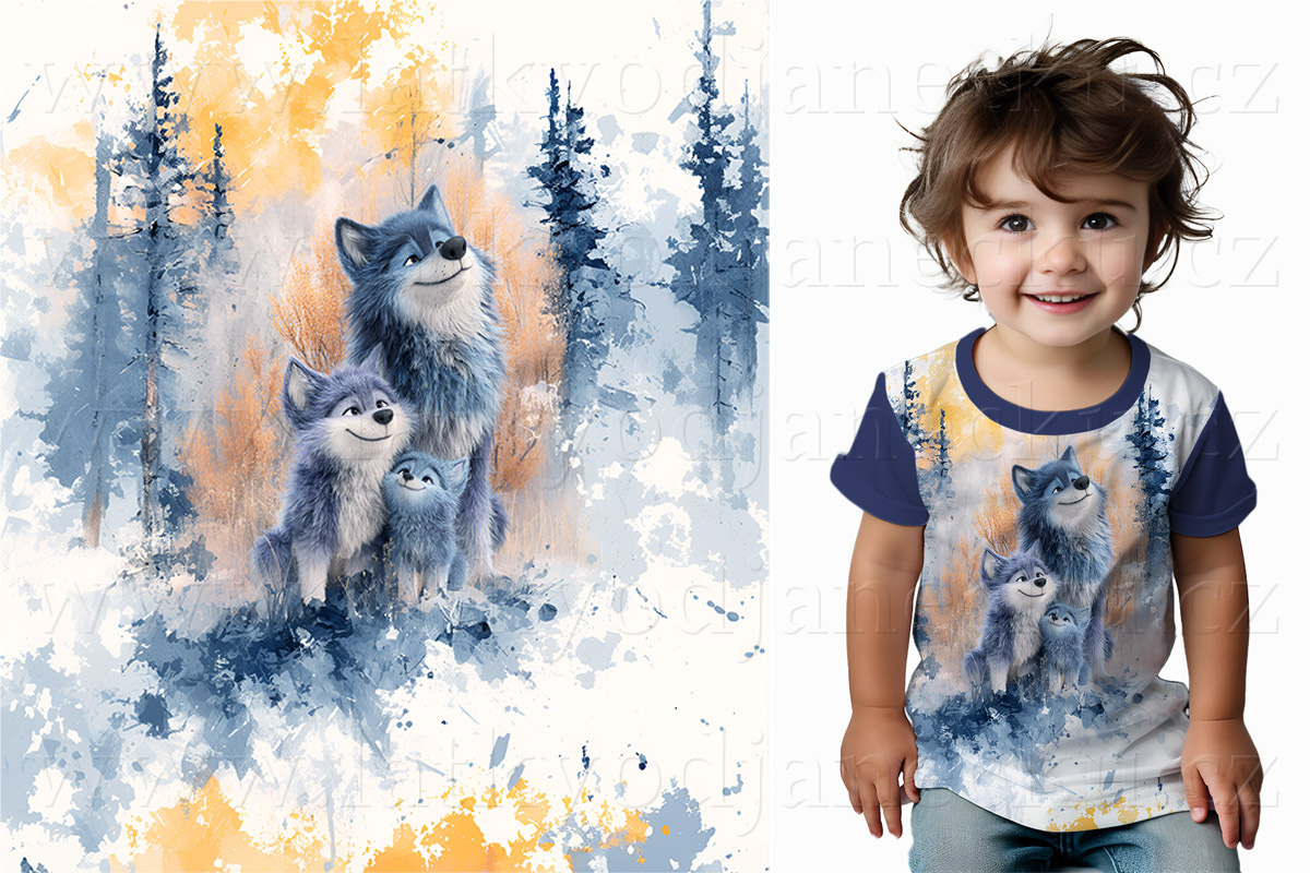 Bavlněný úplet * PANEL S * Vlčice s vlčaty | ZLEVNĚNO |