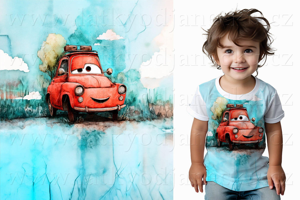 Bavlněný úplet * PANEL S * Červené autíčko | PANELY > Panely S až XL pro děti a ... |