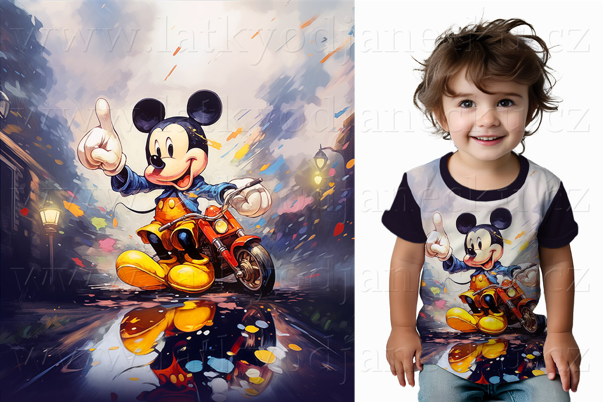Bavlněný úplet * PANEL S * Myšák na motorce | ZLEVNĚNO |
