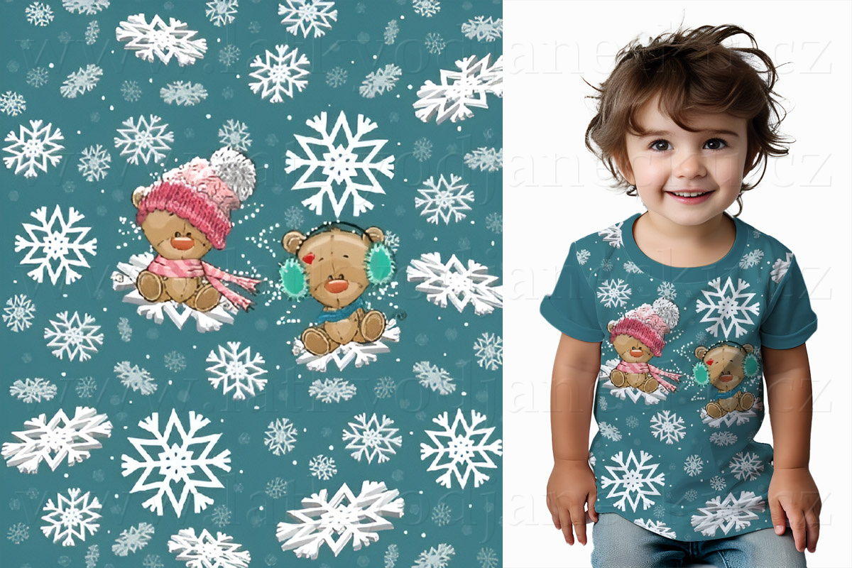 Bavlněný úplet * PANEL S * Medvídci na vločkách | ZLEVNĚNO > VÝPRODEJ > Panely > Pane... |