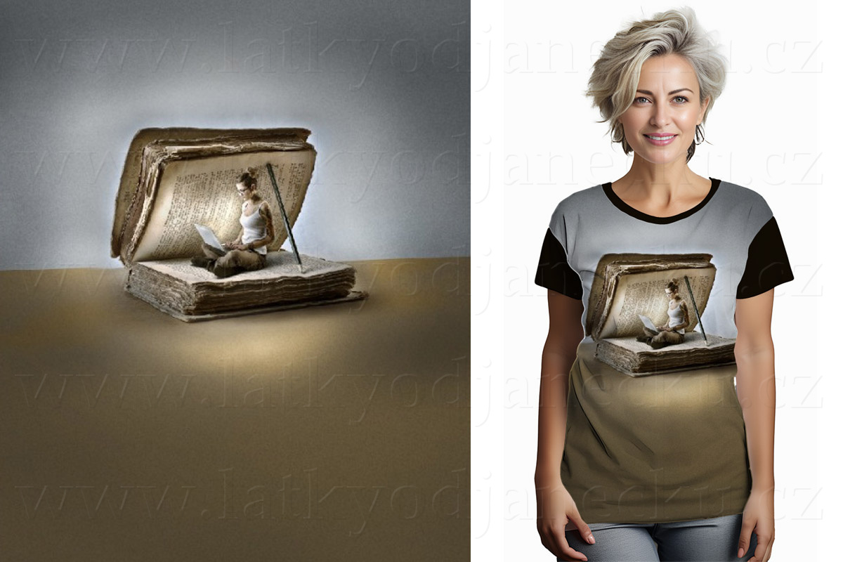 Bavlněný úplet * PANEL L 70 cm * Dívka v knize | ZLEVNĚNO > VÝPRODEJ > Panely > Pane... |