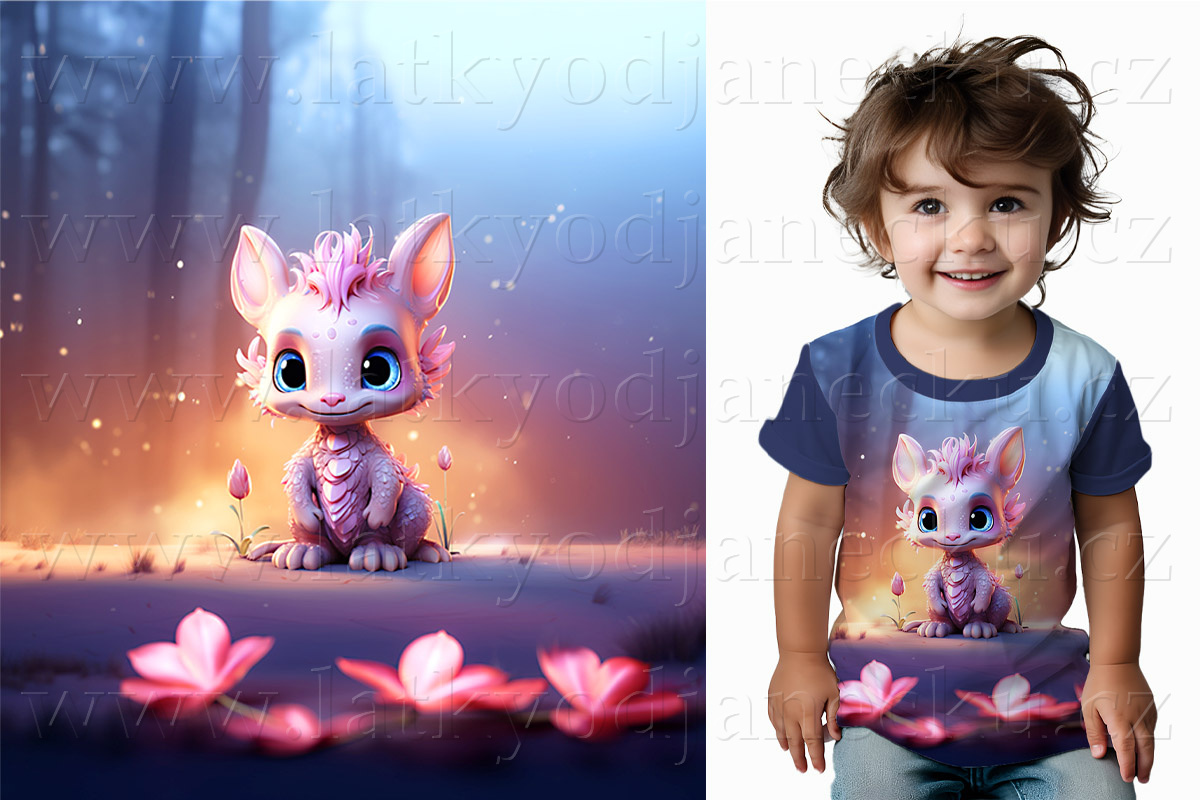 Bavlněný úplet TOP 180g - PANEL S - Růžový dráček | PANELY |