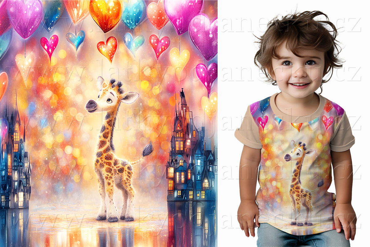 Bavlněný úplet TOP 180g - PANEL S - Žirafa se srdíčky | PANELY |