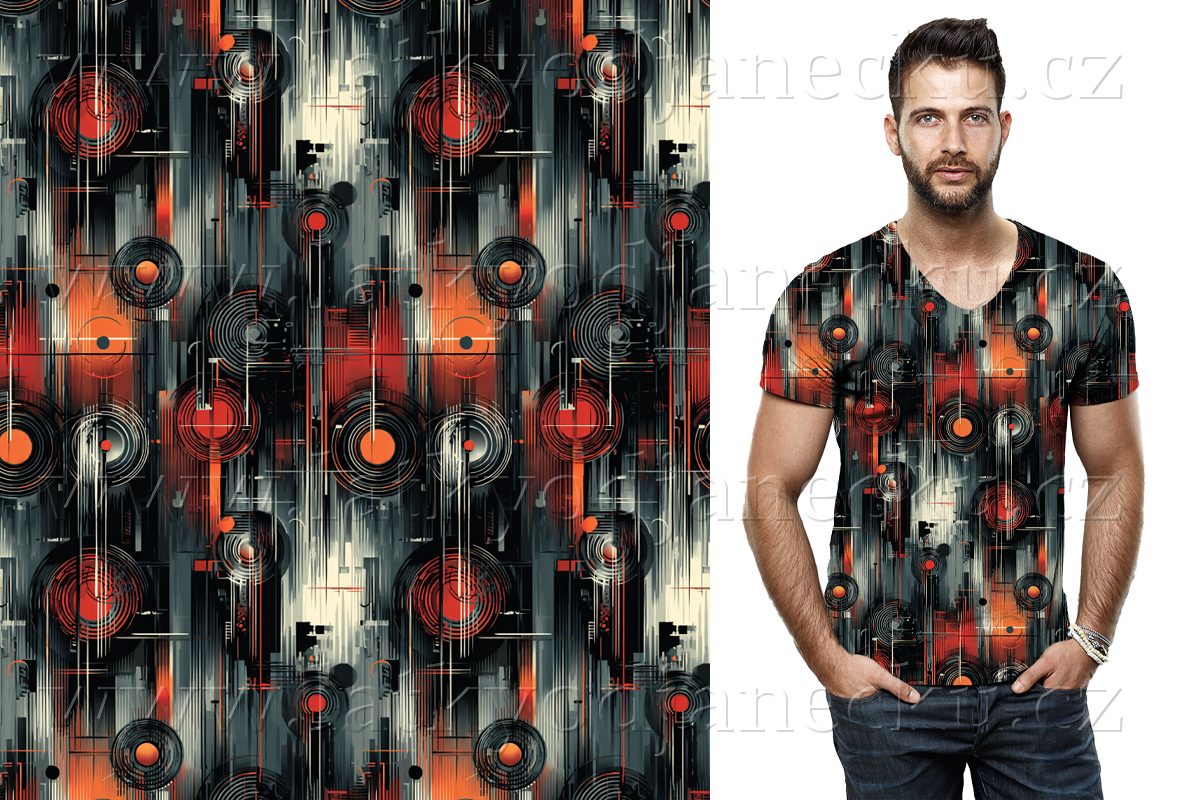 Bavlněný úplet 200g - Abstraktní gramodesky | NOVINKY |