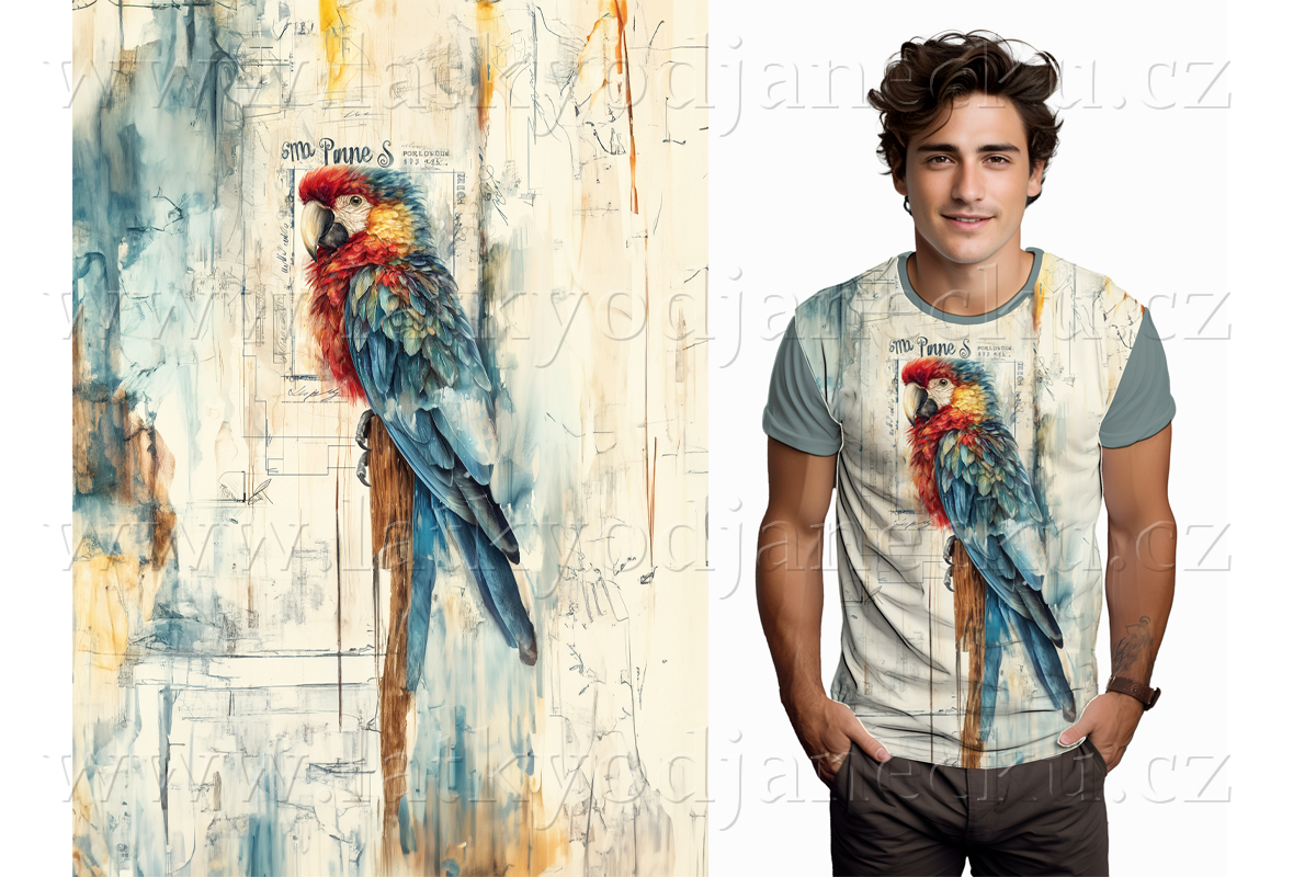 Bavlněný úplet TOP 180g - PANEL na přední díl L - Papoušek n... | PANELY |