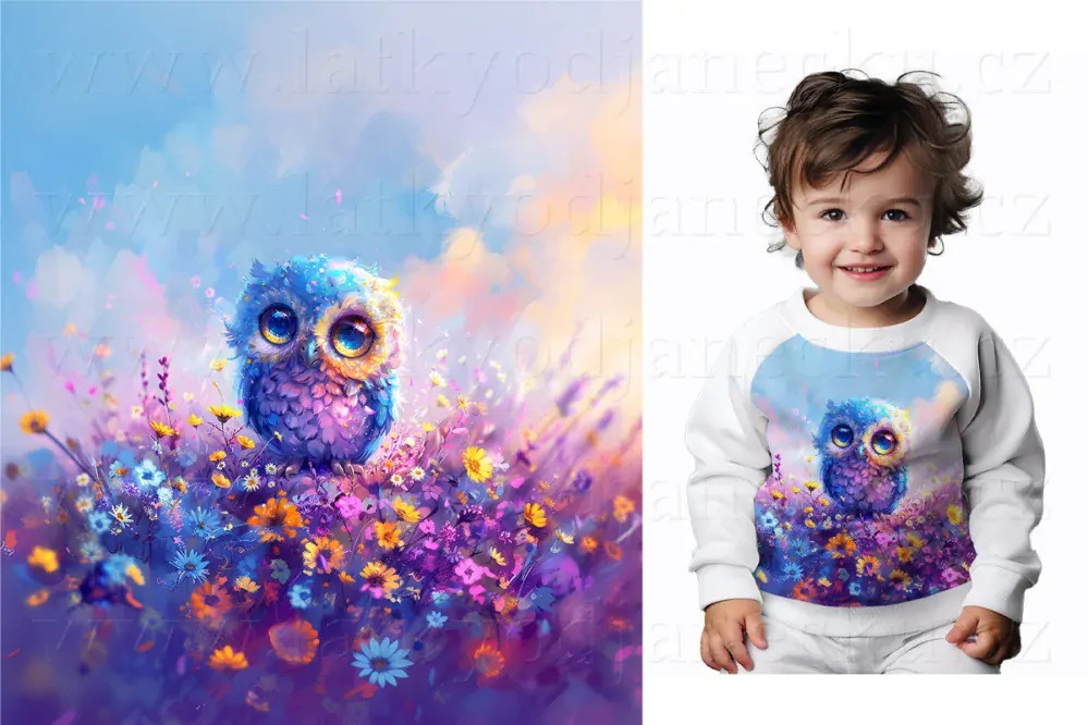 Bavlněný úplet TOP 180g - PANEL S - Barevná sovička | PANELY |