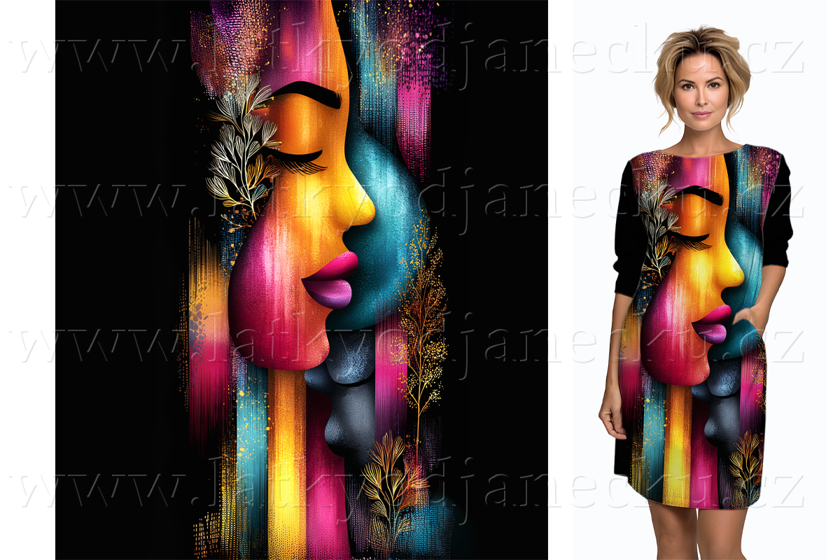 Bavlněný úplet TOP 180g * Neonové abstraktní tváře | ZLEVNĚNO > VÝPRODEJ > Metráž |