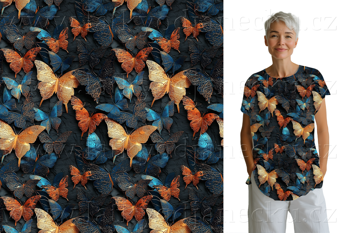 Bavlněný úplet TOP 180g - PANEL S - Jednorožec s motýly | PANELY |