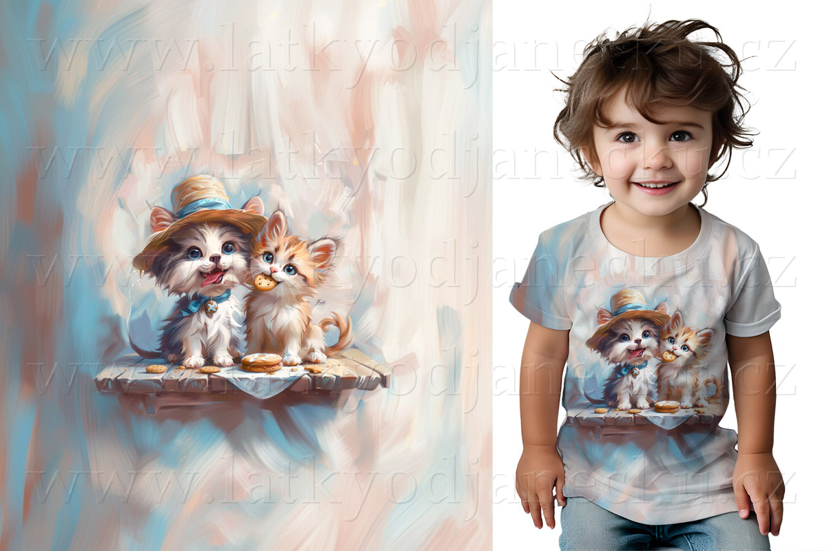 Bavlněný úplet TOP 180g - PANEL S - Pejsek v klobouku s koči... | PANELY > Panely S až XL pro děti a ... |